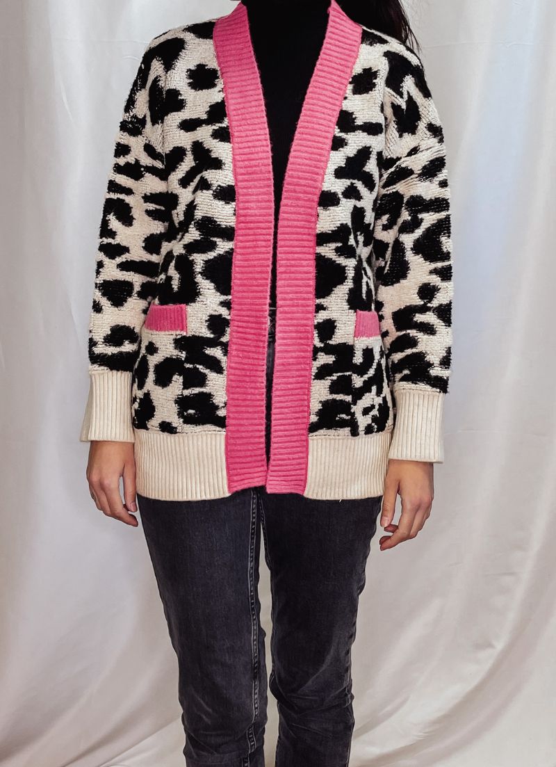 The Leopard Cardi by Lyla & Luxe is a show stopper. Features include an open style, front pockets and ribbed cuffs and hem.