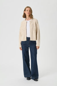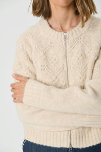 Cozy up in style with the Vernie Zip Cardigan—a wool-blend dream that's equal parts chic and comfy. This cropped beauty showcases an intricate knitted pattern and pairs perfectly with your favorite tee for effortless layering. Ribbed edges keep things polished while the relaxed fit lets you move freely. Whether you're dodging a chill or adding that perfect finishing touch to your outfit, this cardigan's got you covered with a playful twist on everyday warmth.