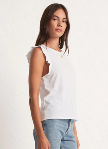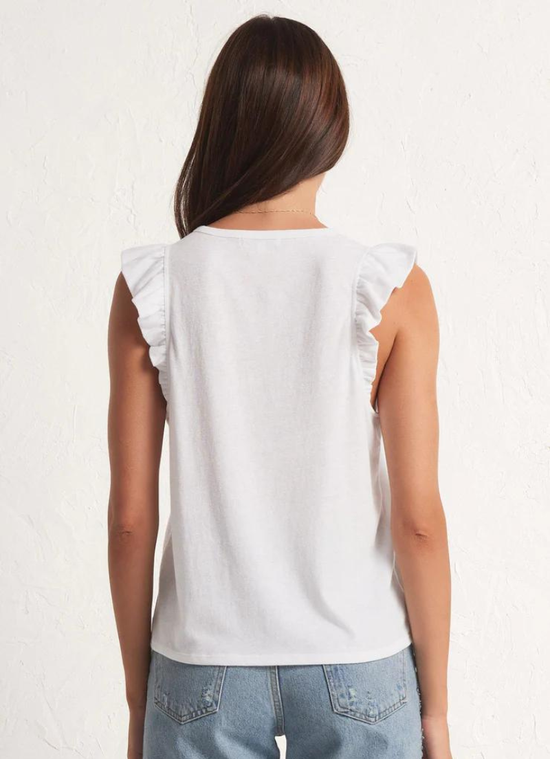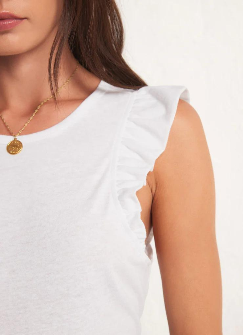 This bra friendly tank has just the right amount of ruffle. The Marielle Flutter Tank is fitted and feminine and meant to be worn tucked into your fave denim for a look that's a step above casual.