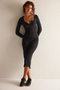 Experience effortless style and comfort with the Wide Awake Layering Top from Intimately. Crafted from ribbed cotton, this form-fitting long-sleeve top offers a soft, sleek feel that’s perfect for layering. Its scoop neckline and button-front closure add subtle detail, while short side slits provide extra comfort and mobility. Elevate your everyday wardrobe with this versatile essential designed to keep you comfortably stylish all day long.