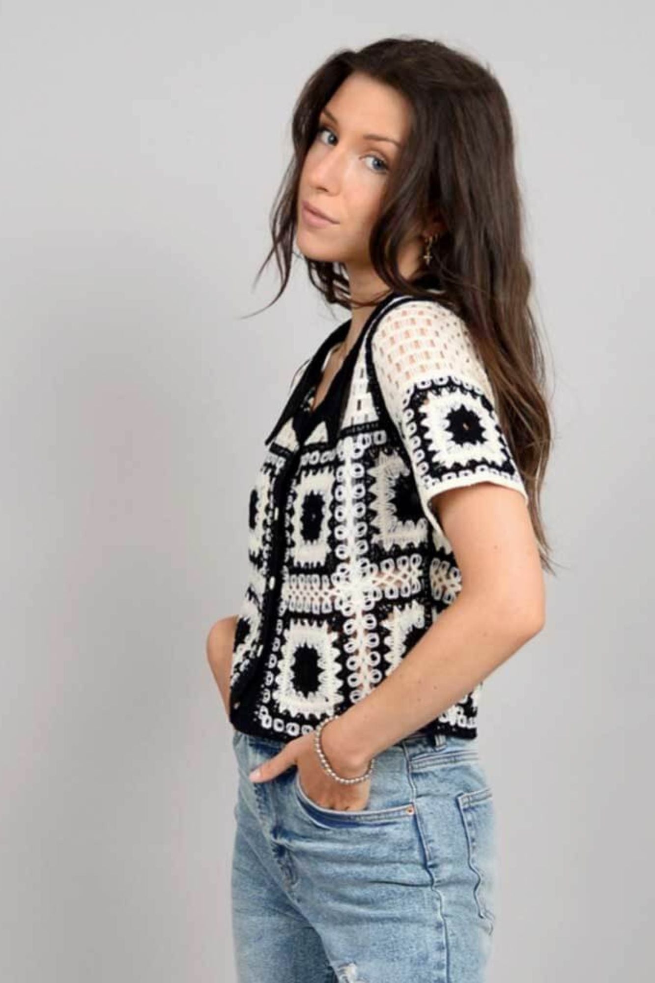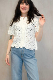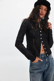 Lace Contrast Button Down