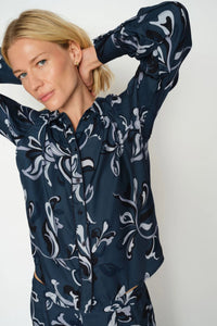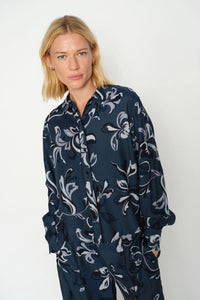 The Abina Serve Shirt is where confidence meets style. This classic button-down features a crisp collar and timeless silhouette, but here's where it gets fun—the stunning floral print in rich blue tones steals the show. The silky-soft fabric flows beautifully, giving you that effortless elegance whether you're dressing it up or keeping it casual. Throw it on with your favorite jeans for instant polish.