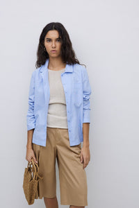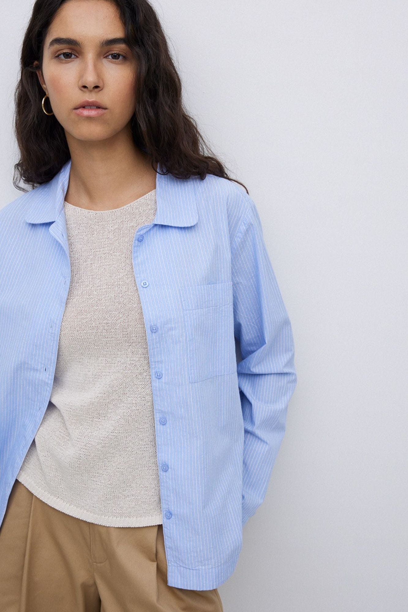 Experience comfort and style with the Blue Bay Shirt! Made from 100% organic-cotton fabric, this striped poplin shirt features a straight cut, collar, and long sleeves. The button close and pleat add a touch of sophistication, while the patch pocket and embroidered YERSE logo detail offer practicality and style.