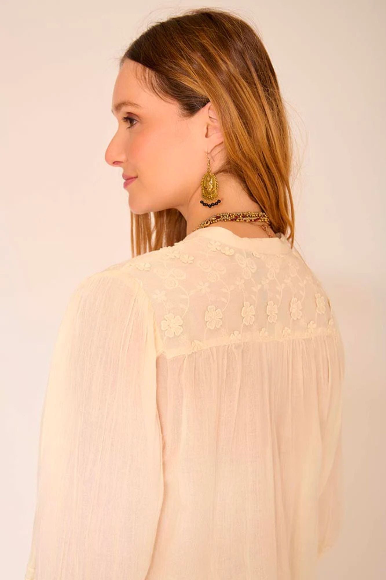 Experience effortless elegance with the CASTELON blouse. Its fluid, delicate embroidery adds a touch of femininity to any look, while the airy texture keeps you comfortable all day. Make a statement and feel confident with this refined and chic piece.