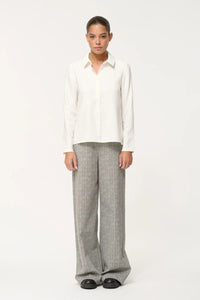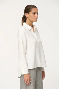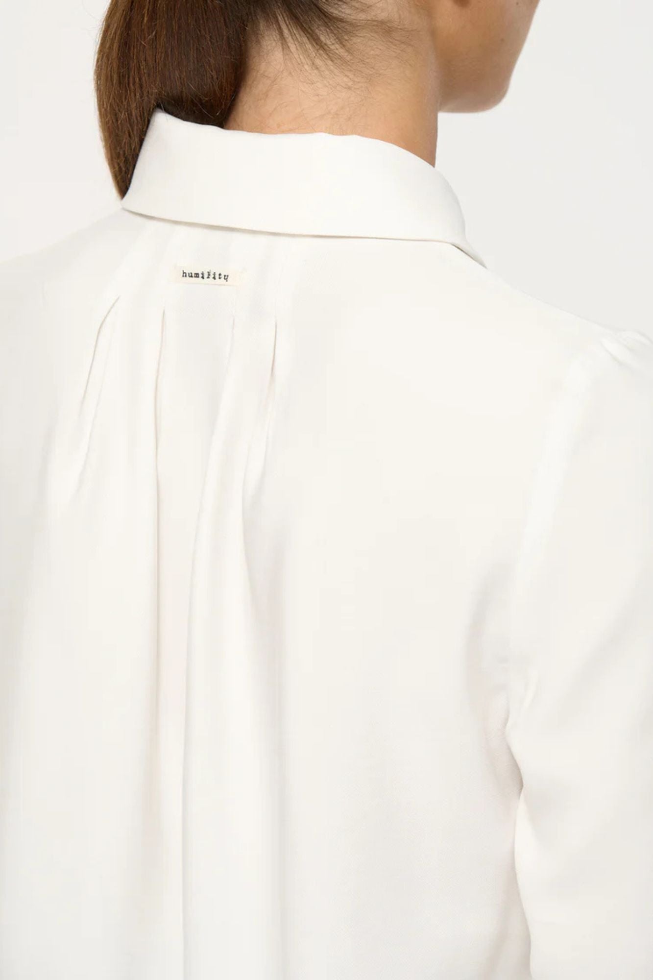 The Hi-Ch-Uchizo Blouse is a sophisticated straight cupro shirt with a shirt collar and long sleeves featuring a buttoned tab. The flat pleats in the back provide a comfortable fit and the buttoned front opening allows for easy wear. Elevate your wardrobe with this elegant and functional blouse.