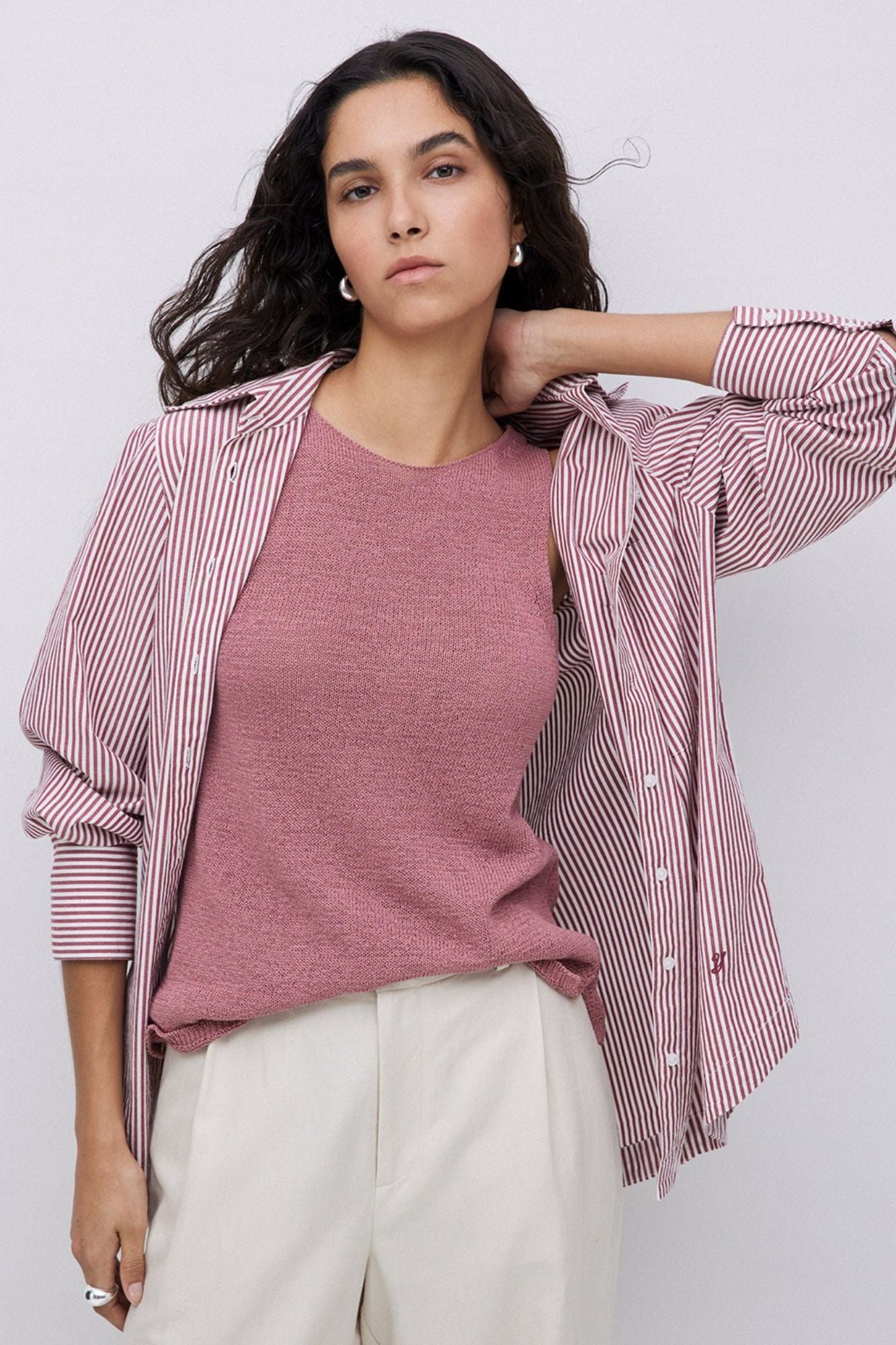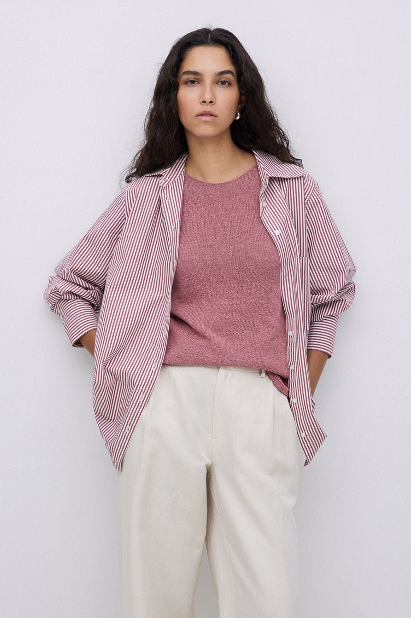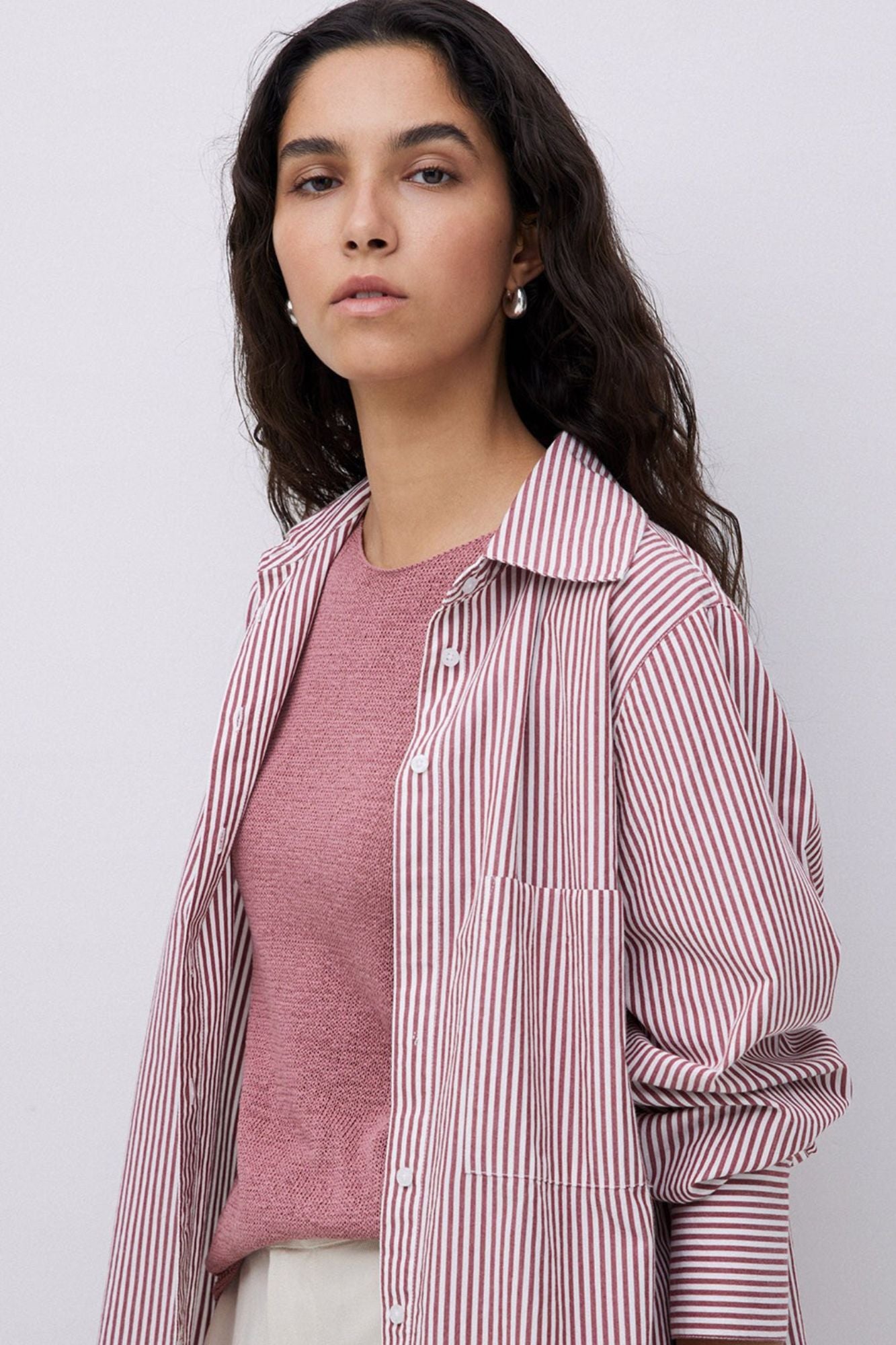 Experience comfort and style with our Oxide Shirt! Made from 100% organic-cotton, this striped print poplin shirt offers a straight cut and features a collar, long sleeves, and a button close. The embroidered YERSE logo detail and pleat add a stylish touch while the chest pocket provides convenience.
