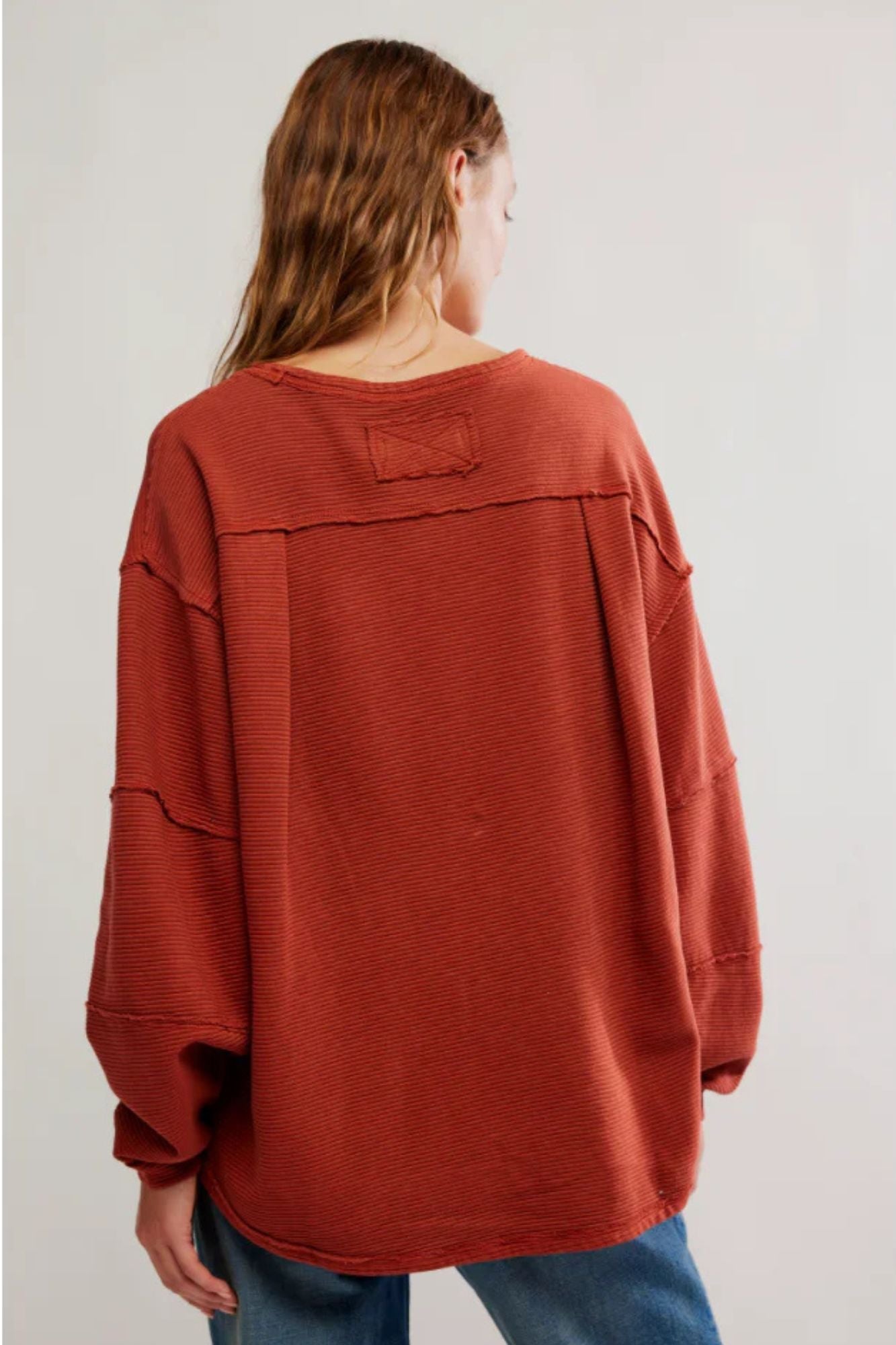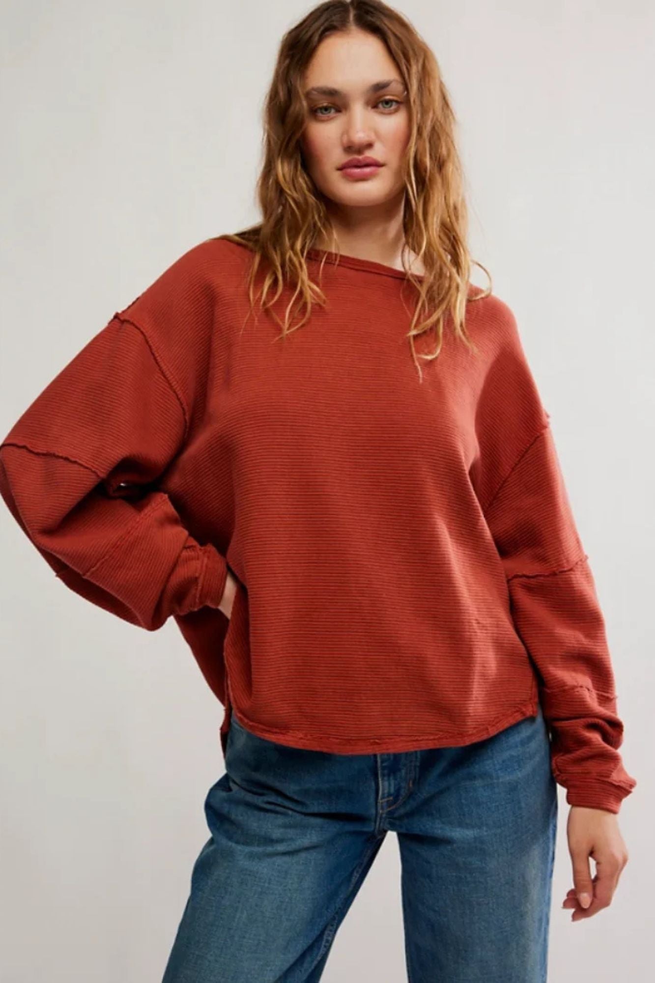 Introducing the Total Eclipse Tee—where comfort meets cool. This long-sleeve essential from our We The Free collection brings an elevated vibe to your everyday rotation. The slouchy, oversized silhouette pairs beautifully with ribbed fabrication and a flattering scoop neckline, while drop-shoulder sleeves with cuffs and defined seam detailing add that effortless edge. Layer it solo or over your favorite basics—this timeless piece transitions seamlessly from season to season, making it the wardrobe MVP you didn't know you needed.
