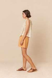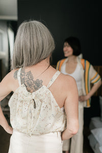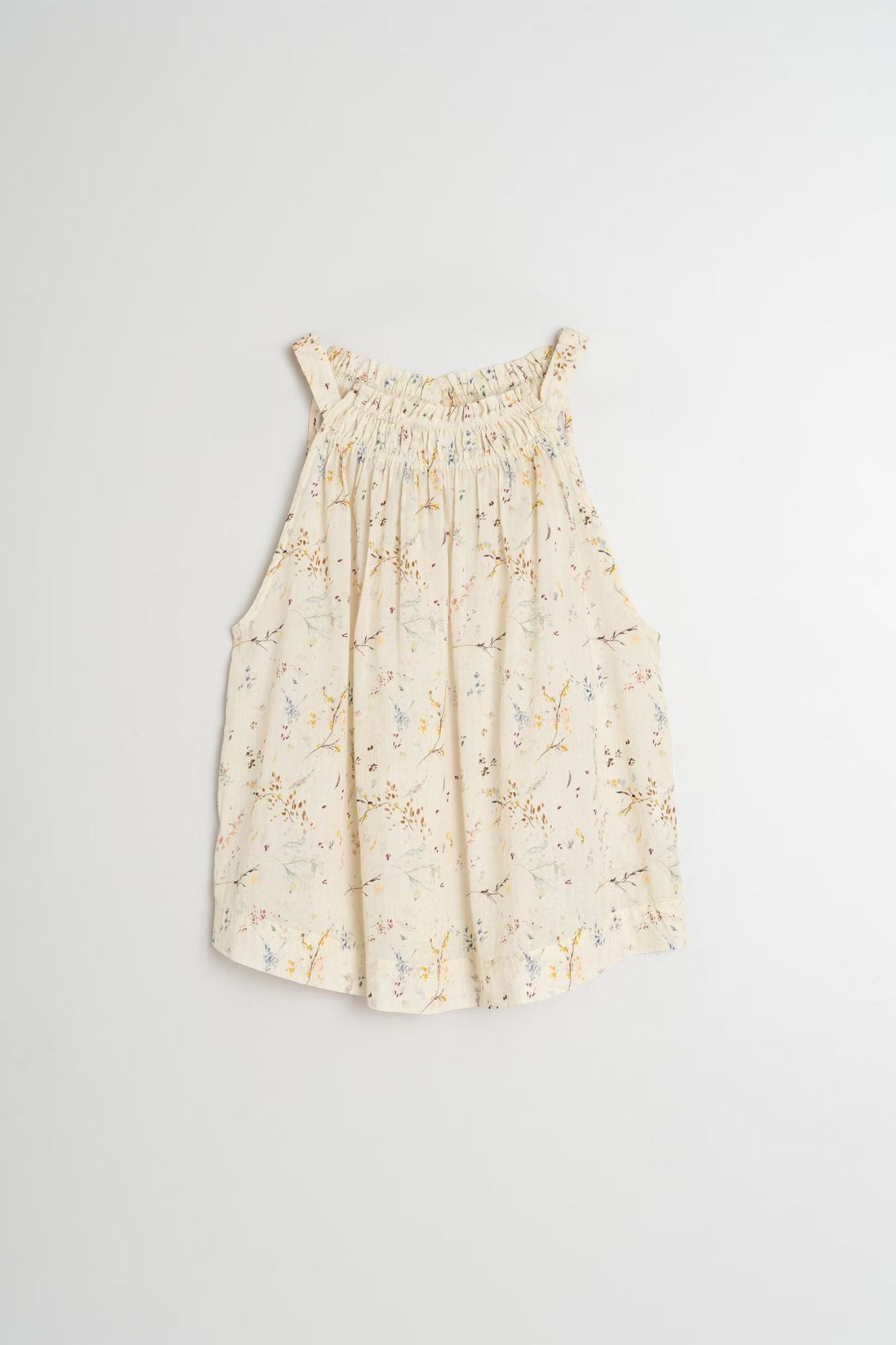 Add a romantic touch to your wardrobe with our Halter Collar Top. The gathered design and back tie closure give a modern and feminine look. Made from soft cotton voile, this top features a floral print inspired by handmade paper. Its relaxed fit ensures all-day comfort.