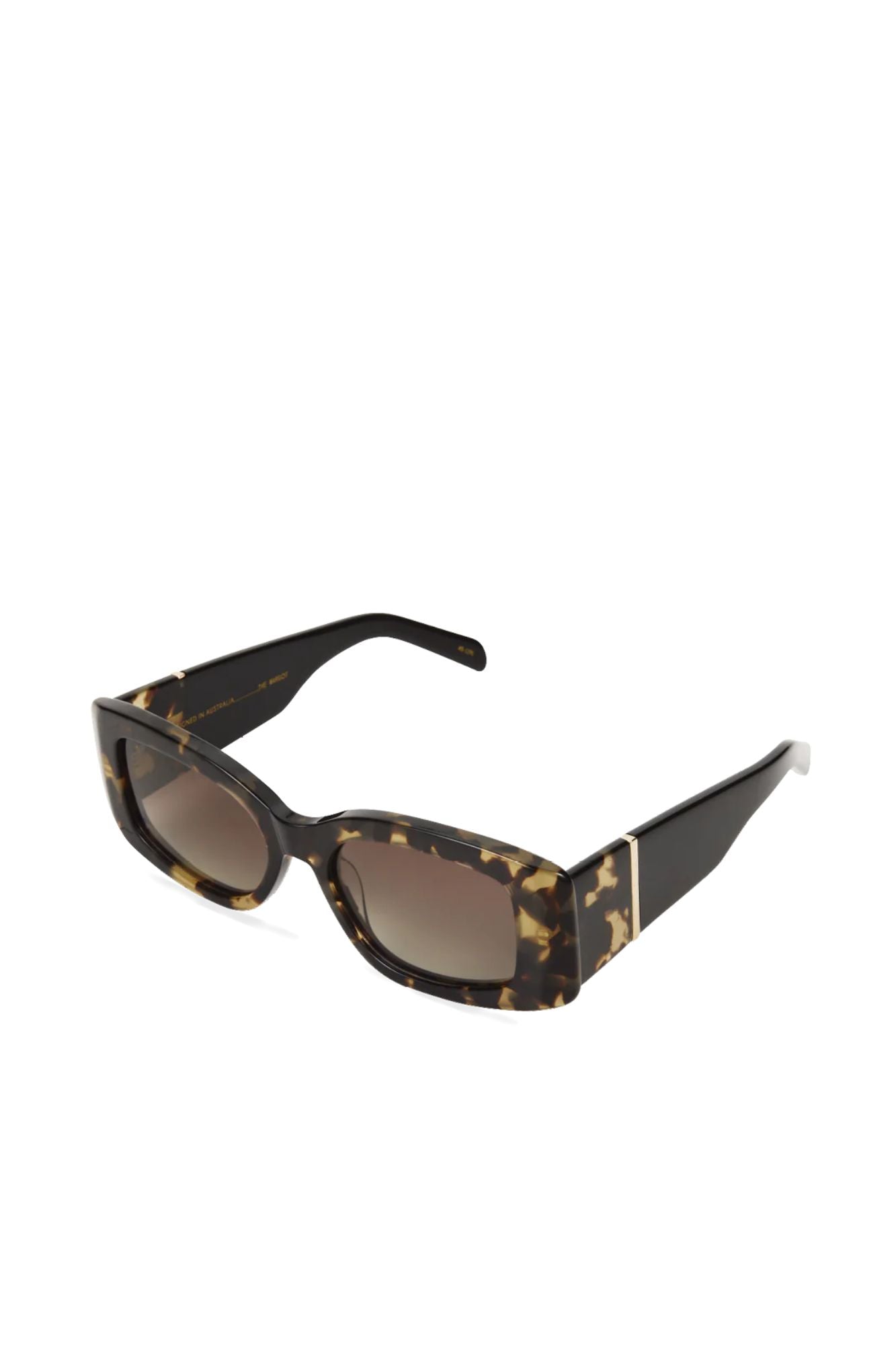 Elevate your style game with The Margot by Banbé. These modern-chic rectangle sunglasses boast a gold embossed logo, scratch-resistant polarised lens, and 100% UV protection. Its acetate frame and included branded vegan case make it the ultimate fashion accessory. Get the timeless contemporary look you desire today.