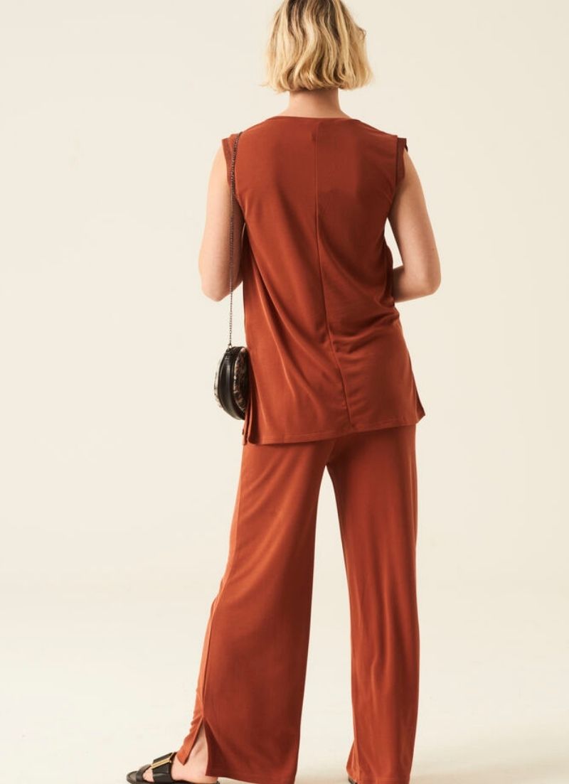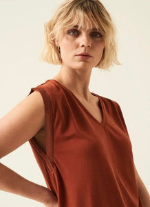 Sleeveless top subtle glittery edge. Give your outfit extra sparkle with this top. This top has a regular fit, a V-neck and low armholes with golden details.