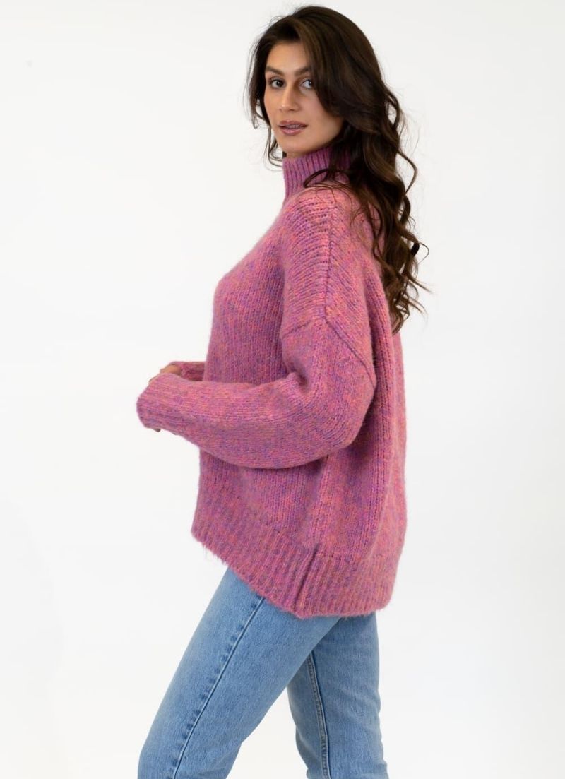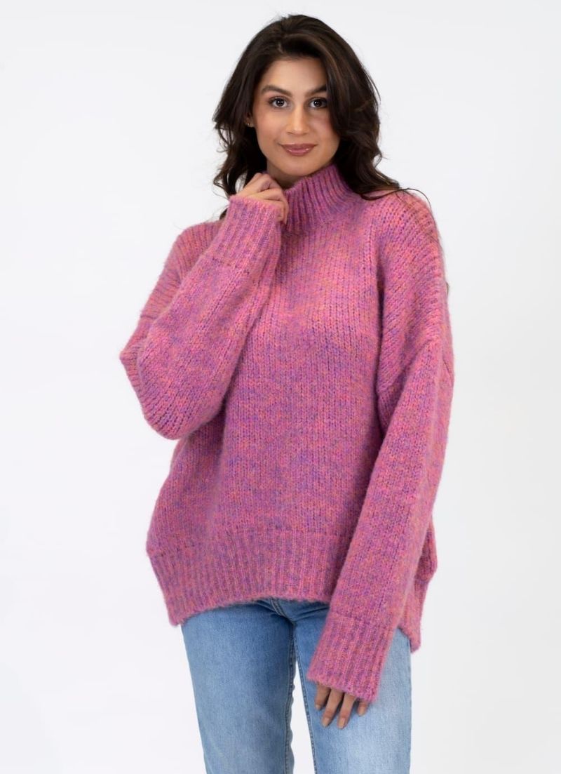 Brighten up your day in the Aggie Mock Neck Sweater. In a vibrant pink, this mock neck sweater will keep you cosy and stylin'. Oversize, loose fit.
