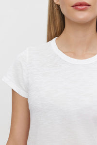 Experience comfort and style with our Marie Tee. Made from Velvet's signature cotton slub, this tee offers a relaxed boxy fit and features a crew neckline and short sleeves for a flattering and comfortable look. Perfect for any casual occasion.