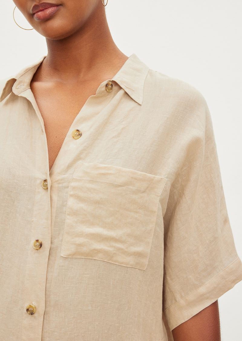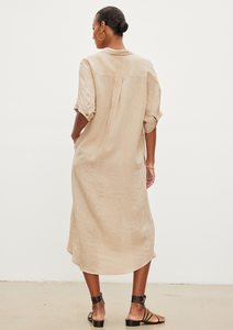Get ready for spring with the Sandra Linen Dress! Made with soft and breathable linen, this dress is perfect for warm weather. Its relaxed fit and breezy fabric will keep you comfortable and chic all season long. Upgrade your wardrobe with this must-have piece.