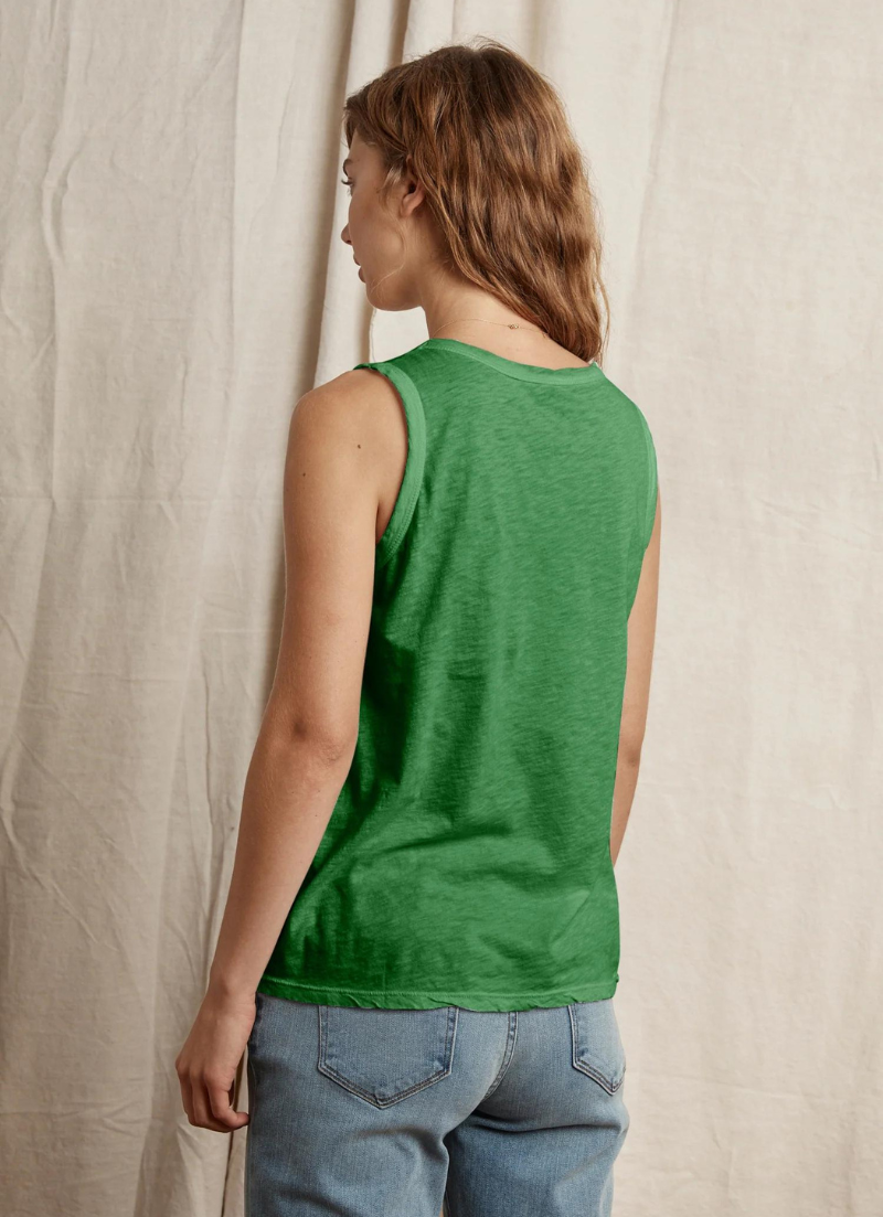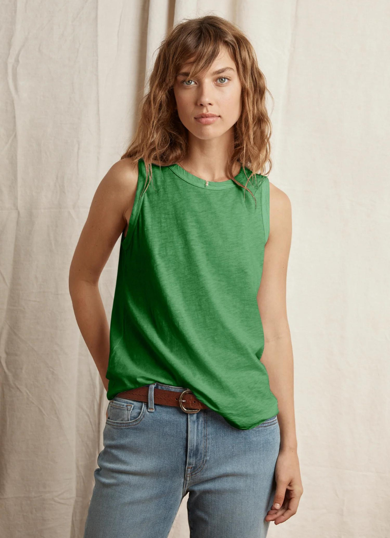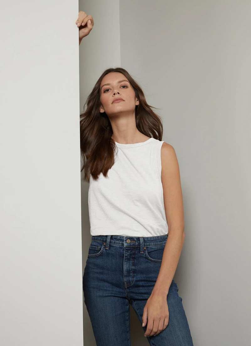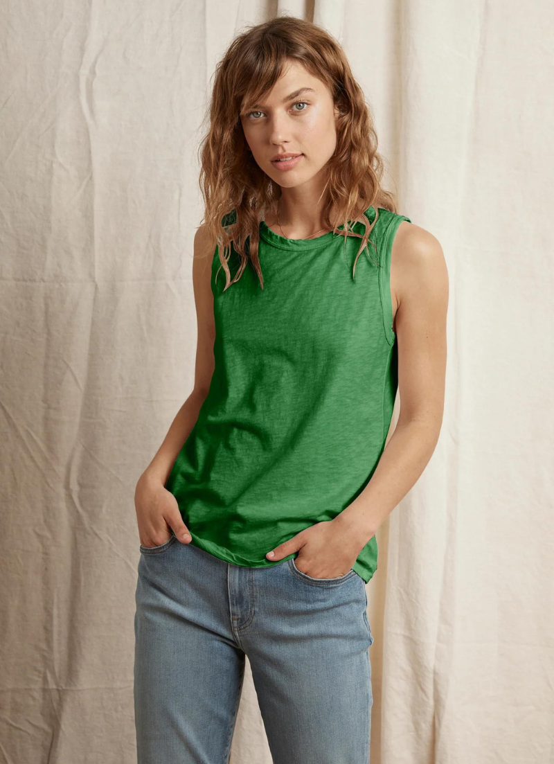 This tank nails the aesthetic. cut from our classic cotton slub, it has a flecked heather texture and feels as soft as an old favorite. featuring an old school crew-neck and the best arm holes we've ever designed.