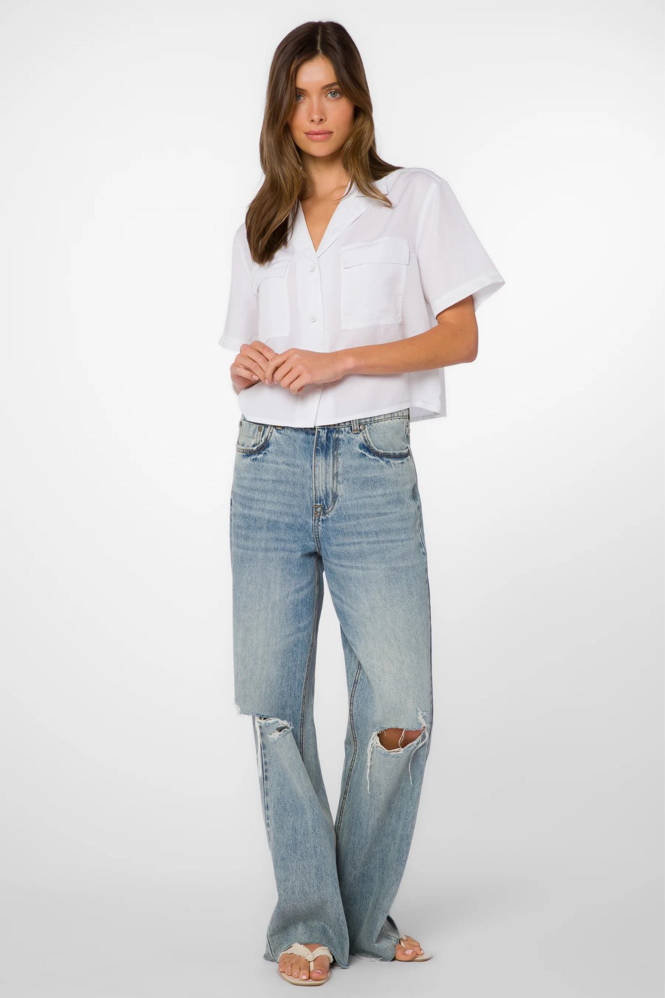 Elevate your wardrobe with the Lenora Shirt! With short sleeves and a boxy utility style crop, this shirt is both fashionable and functional, making it perfect for any occasion. From work to weekend, this must-have piece will effortlessly take you from day to night.