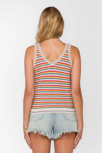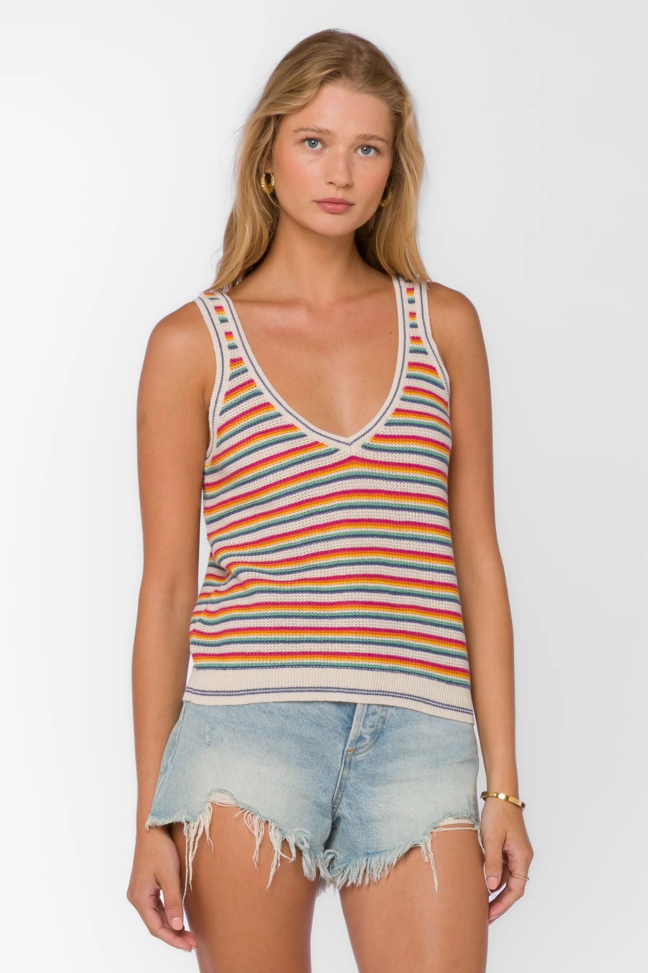 The Nadia Sunny Stripe Tank brings a fresh twist to your wardrobe with its breathable knit and soft, airy feel. Featuring a playful double V-neckline, this tank adds just the right amount of structure while keeping things light and easy. Perfect for sunny days and casual adventures, it’s your new go-to for effortless style with a fun, textured touch.