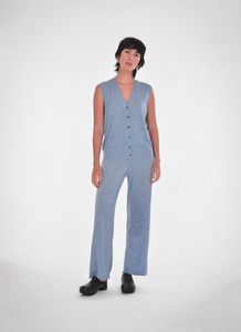 Introducing the Remi Button Vest - A timeless essential. This classic button-up vest offers a fit that effortlessly complements any ensemble. Crafted from a luxurious blend of Tencel and wool, it drapes elegantly, embracing you in comfort and style.