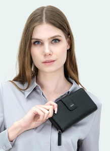 This functional wallet has 10 card slots, one I.D Window, a zip-around section, and Bill Slides. Surprise, that's not all! It also has a back coin zip!