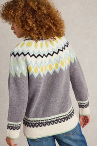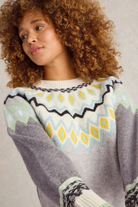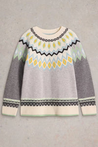 Stay warm and stylish with our Sunset Fairisle Sweater, exclusively available online. Made with responsibly sourced lambswool, this jumper features a cozy Fairisle design in sunny colors. Perfect for adding some vitamin D to those cold, grey days.