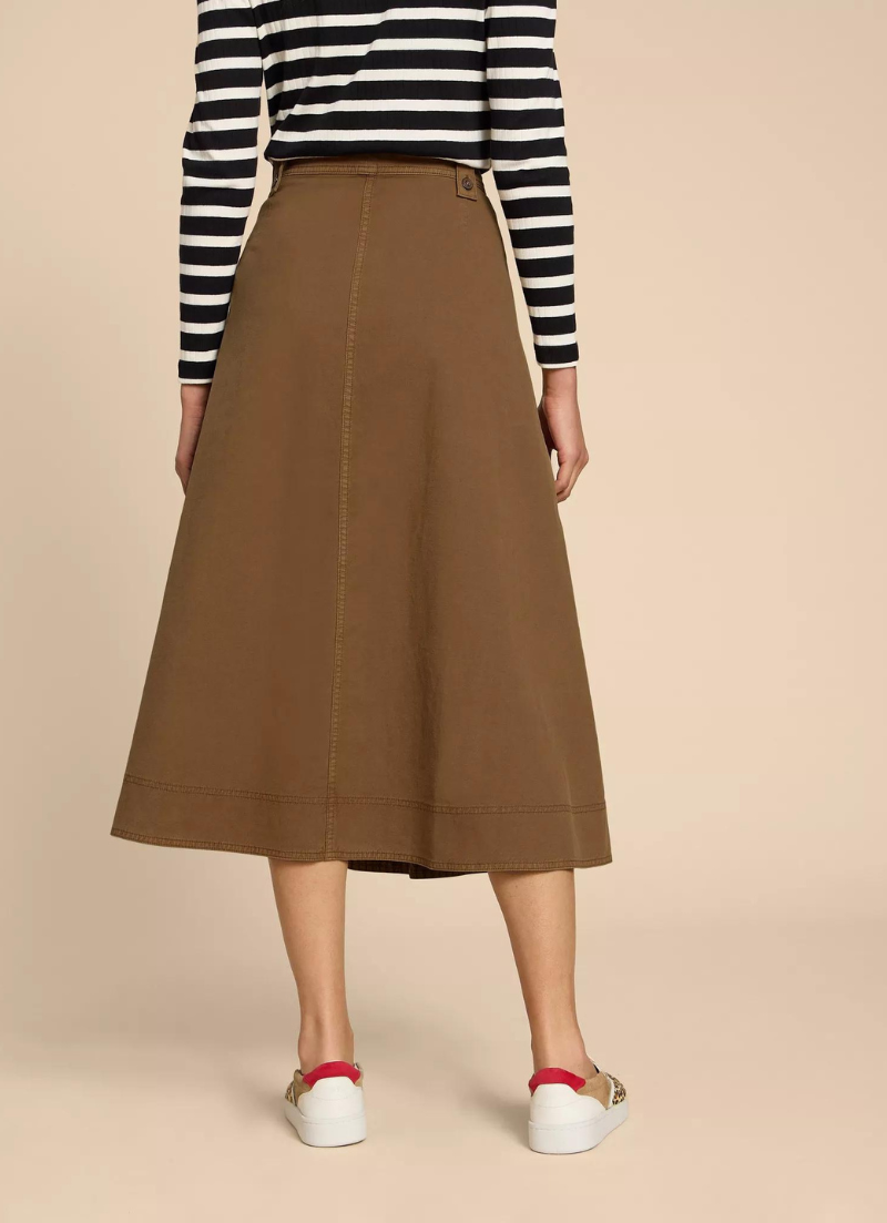 Introducing the Tara Chino Skirt - an A-line skirt that combines the versatility of chinos with the playful satisfaction of twirling around. Perfect for adding some fun to your wardrobe while still looking put-together.