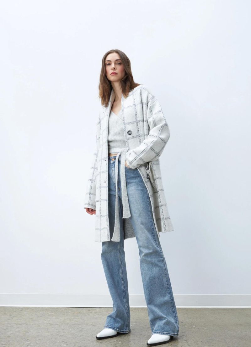 Stay warm this winter in the stylish Nellie Coatigan. Featuring a classic mid length cut with a timeless white and grey window pane print, this coat adds a touch of sophistication to any outfit.