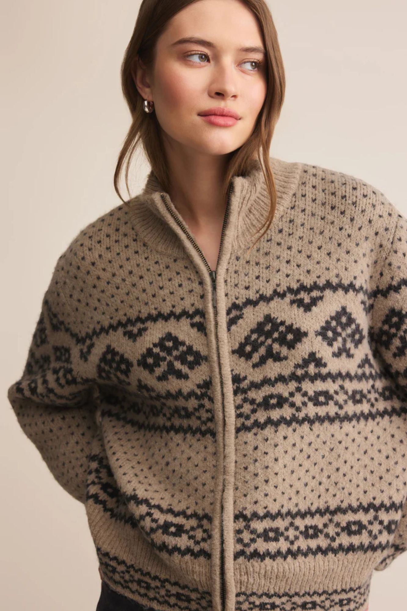 Wrap yourself in nostalgia with the Bismarck Zip Cardigan—a playful take on timeless Fair Isle charm. This midweight knit features a flattering high neckline and just the right amount of texture to keep things interesting. Whether you're settling in by the fire, working from home, or layering over your favorite tee, it's the kind of piece that feels like a cozy hug. Vintage vibes, modern comfort, zero regrets.