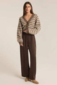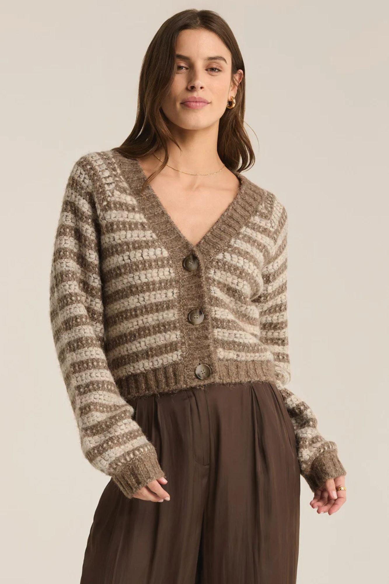 Our Este Metallic Cardigan is the perfect addition to your wardrobe. Crafted from shimmering metallic striped sweater yarns, it adds just the right amount of glam to any outfit. The functional button-up front and modern faux horn buttons elevate your layering game. Stay stylish and chic with this v-neck cardigan.