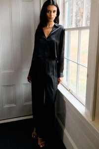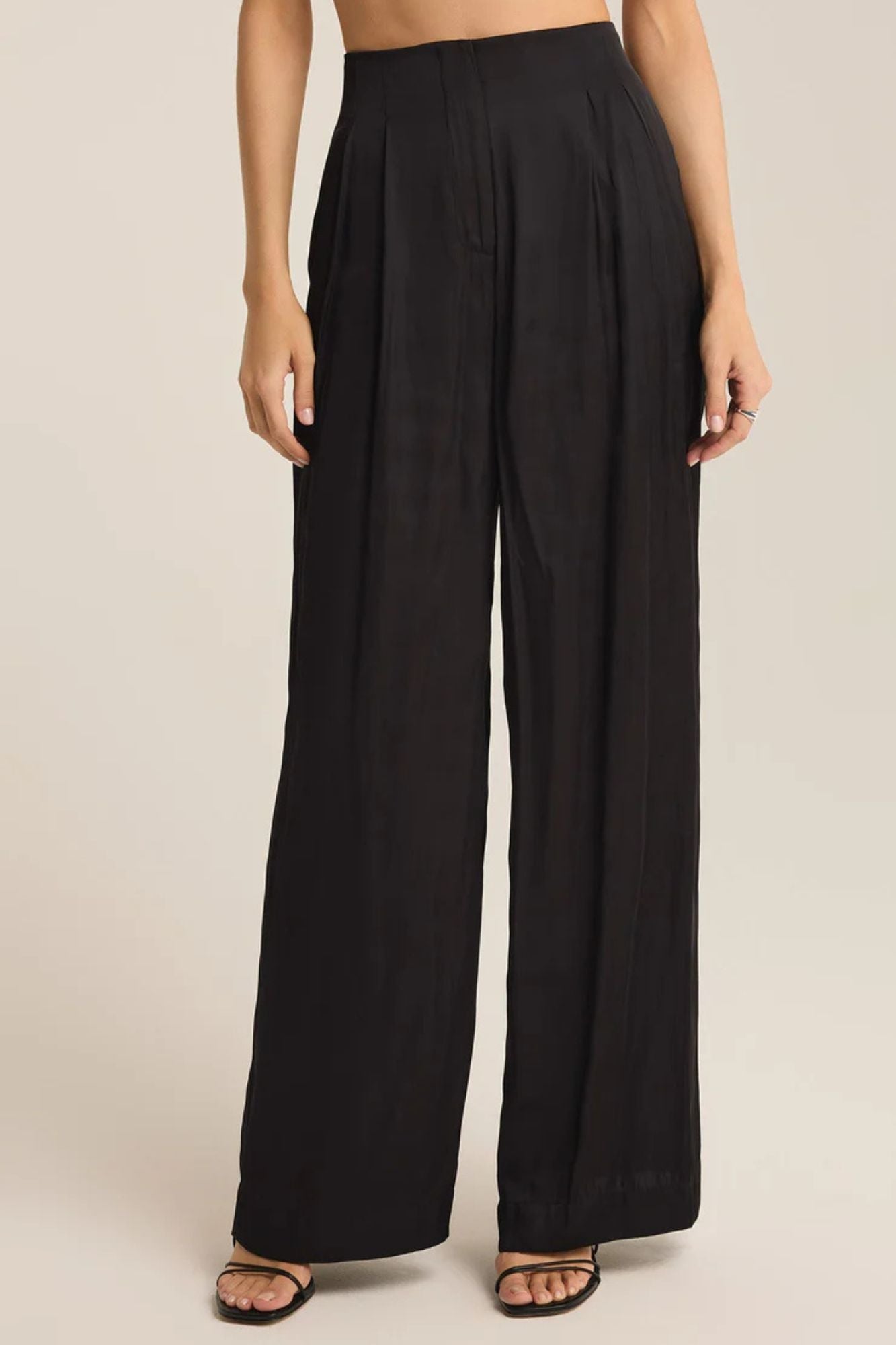 Introducing the Lisse Wide Leg Pant - the perfect addition to your wardrobe. Crafted from a sleek fabric, this high-rise pant boasts a touch of shine and sophistication. With a zip front, side seam pockets, and front pleats, this full-length pant offers versatility for any occasion. Elevate your look with ease.