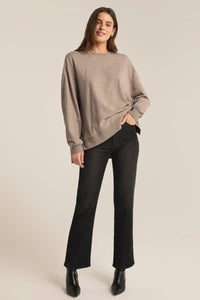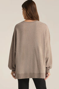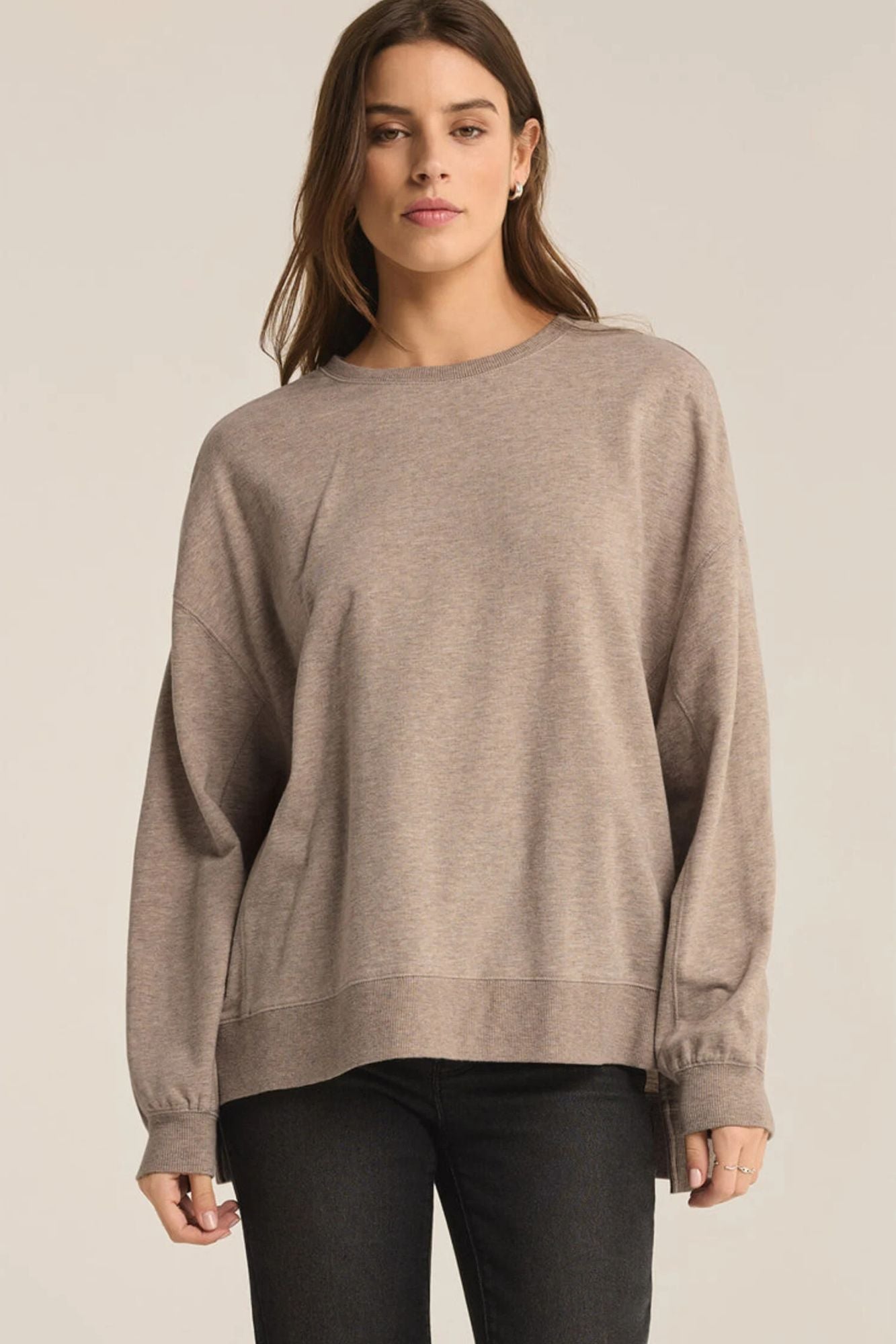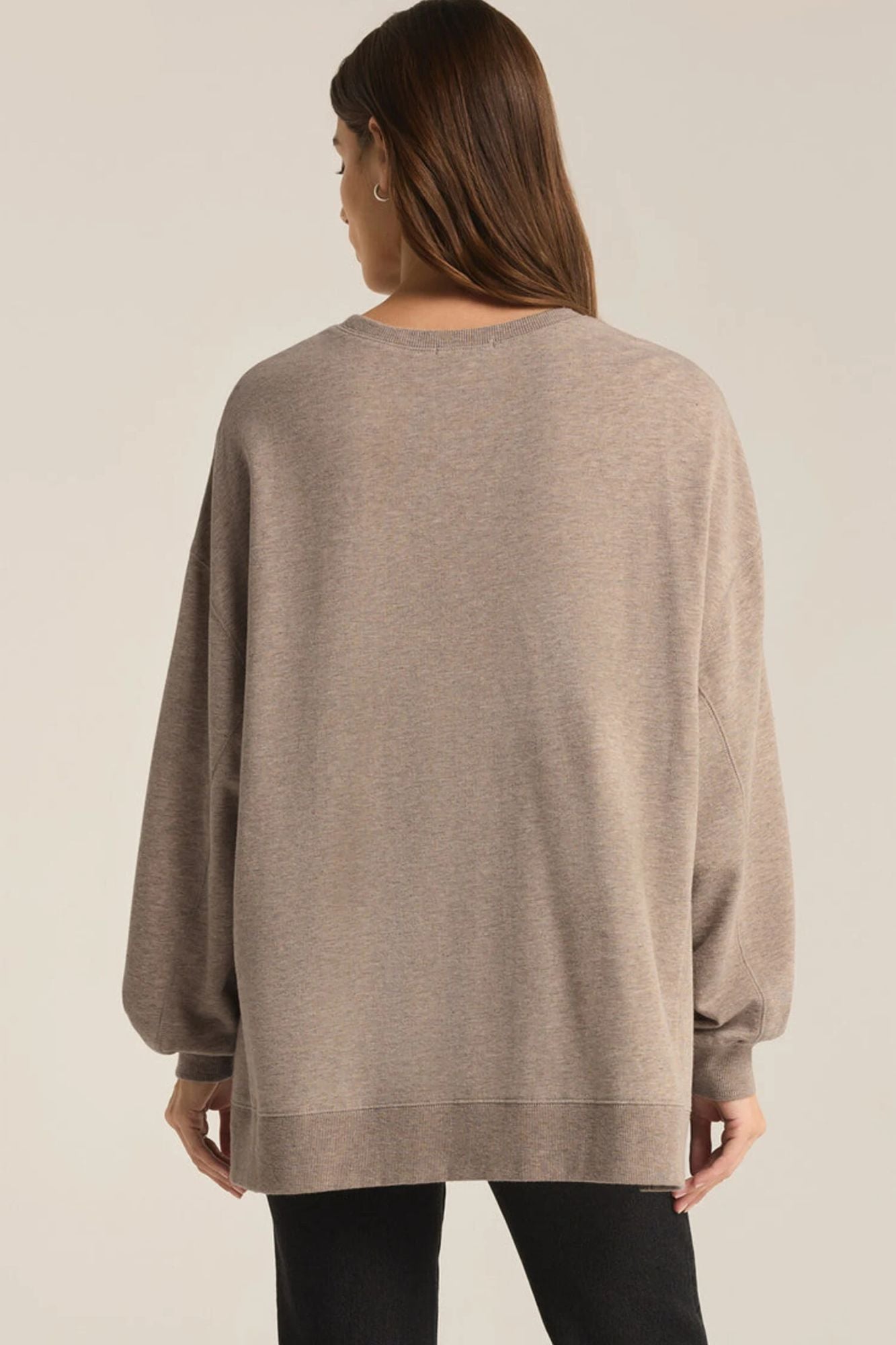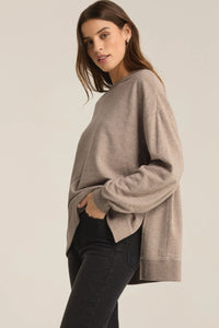 Introducing the Modern Weekender - a lightweight, oversized crewneck sweater designed for comfort and style. Made with our signature burnout fabric, this sweater features small side slits and ribbed trim. Avoid heat to maintain the fabric's longevity. Sizing down also an option for a less oversized fit.