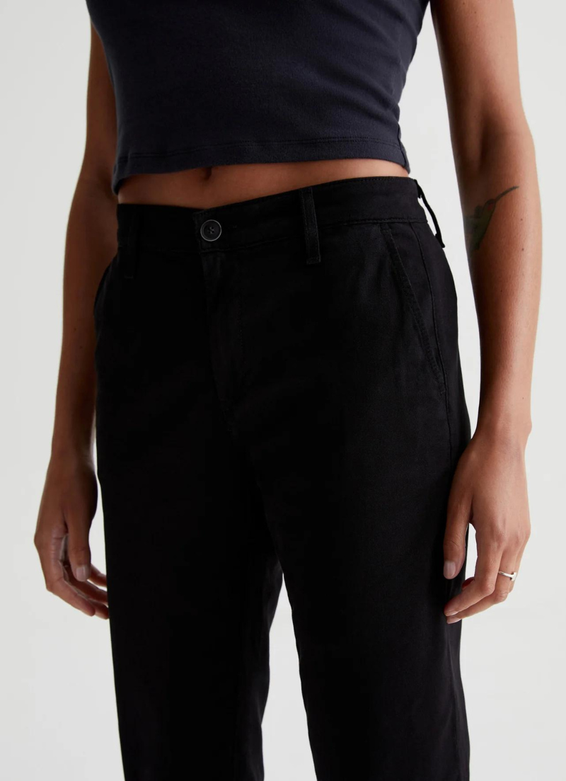Caden is our tailored trouser for women featuring a black hue in our Sumptuous Stretch Broken Twill fabrication. This trouser offers a relaxed fit through the hip, slight tapering at the thigh, and a cropped ankle. Designed in a luxurious lightweight fabric with comfortable super stretch wear.