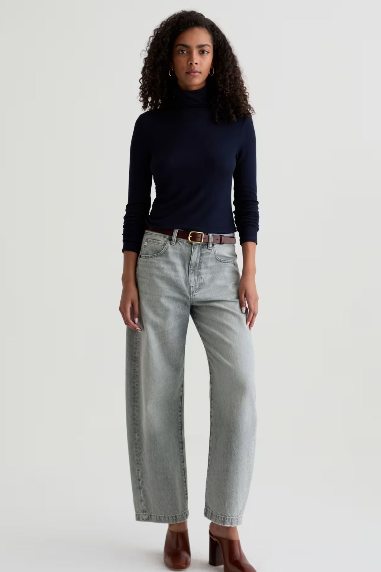 The Hattie High-Rise Barrel jean is tailored to flatter petites with its sculpted, curved barrel leg and high-rise fit. Made from structured, non-stretch denim, it maintains its shape for a polished and stylish look that enhances your silhouette. Perfect for adding modern dimension to any outfit, this jean combines chic design with lasting form.