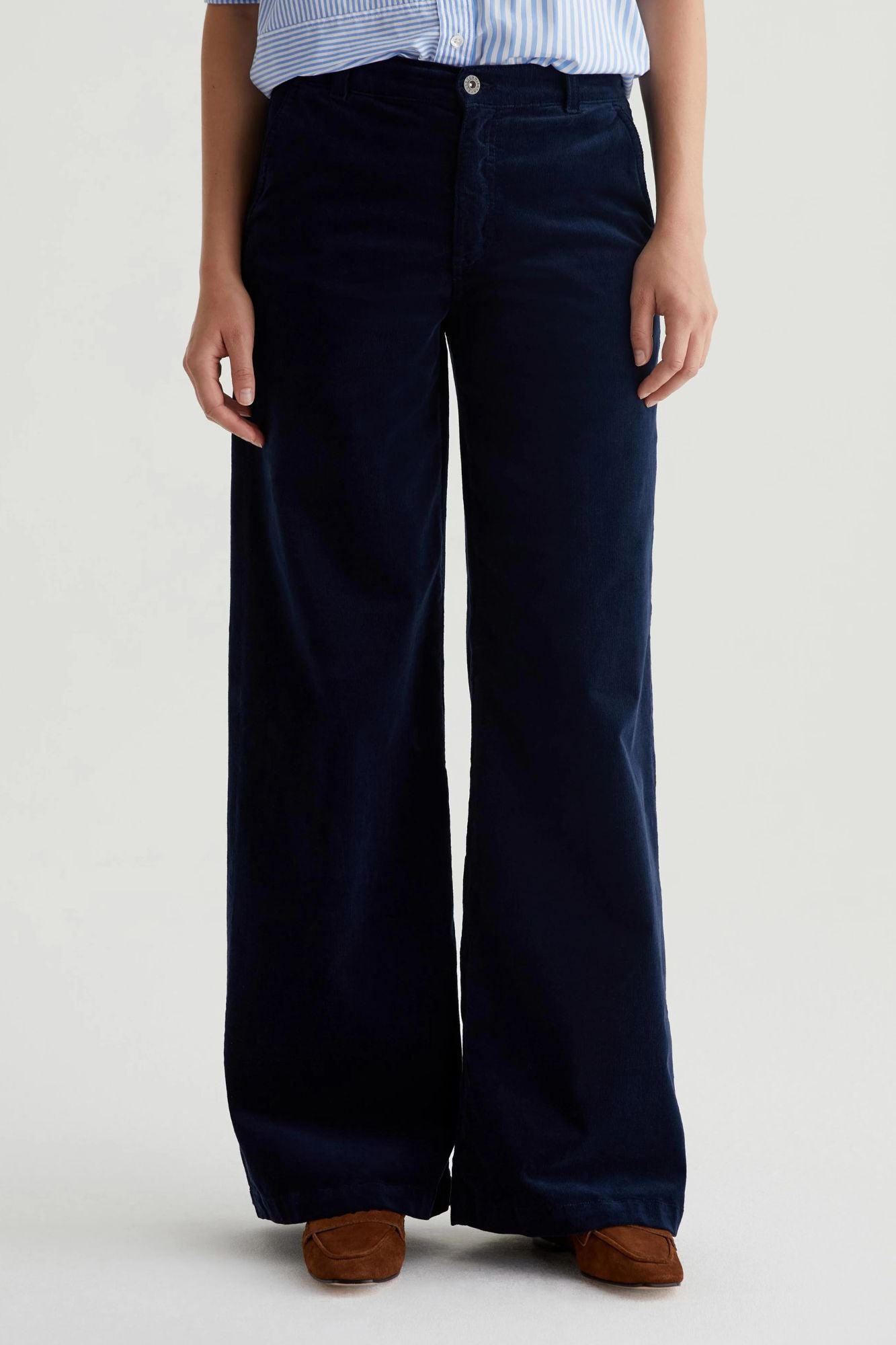 Introducing Stella Corduroy - your new go-to pants for comfort and style! Made from plush mini corduroy with a flattering low-slung waist and super-wide legs for a tailored look. These pants also feature convenient slant pockets. Available in a deep blue shade.