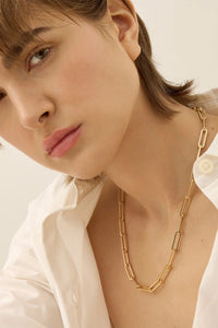 Sleek meets chic with the Andi Slim Chain—a modern paperclip necklace that's anything but ordinary. Crafted in high-polish gold with a crisp, contemporary silhouette, this piece features built-in extender rings that let you dial in the perfect fit without any fuss. Layer it, wear it solo, or adjust it to match your mood. Effortless style that actually works as hard as you do.