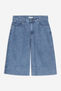 Elevate your warm-weather wardrobe with these indigo denim Bermuda shorts. Crafted from a sustainable lyocell and organic-cotton blend, they feature a flattering mid-rise cut with a relaxed wide-leg silhouette. The classic button and zip fastening, paired with five functional pockets, delivers timeless style and practicality. Made in Portugal with attention to quality. Perfect for casual outings or weekend adventures.