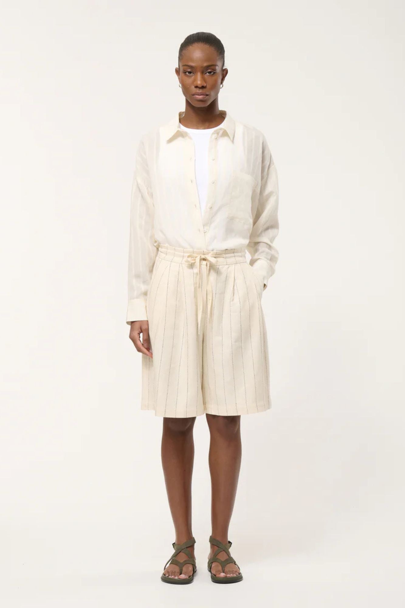 Juan Shorts feature bold horizontal stripes in a relaxed fit. The adjustable drawstring waistband and secure fly-and-hook closure ensure a comfortable, customizable fit. Italian pockets provide practical storage without bulk. Perfect for casual summer style with timeless appeal.