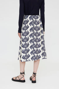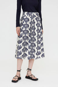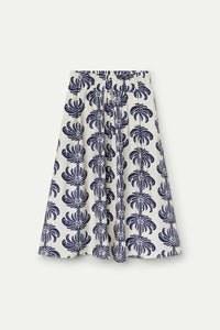 Effortless elegance meets tropical vibes in this crepe midi skirt. Featuring a vibrant palm spring print, high-waisted elasticated waistband, and delicate pleated details, it's designed for comfortable all-day wear. The structured crepe fabric drapes beautifully while the fixed waistband ensures a secure, flattering fit. Perfect for warm-weather styling, from casual outings to weekend getaways.
