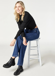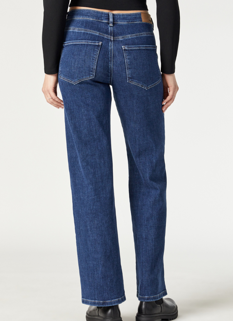 Ce jean léger à jambe large est fabriqué avec des fibres recyclées et du Tencel™, avec un délavage indigo intemporel qui rehausse chaque tenue.