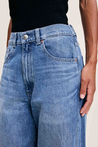 Experience the perfect blend of comfort and style with the Taylor Relaxed Barrel Ultra High Rise jeans. The ultra high rise fit flatters your waistline while the relaxed barrel leg offers effortless movement throughout your day. The Meadow Lake mid-indigo wash, complete with subtle fading, gives these jeans a coveted worn-in appearance that pairs with everything. Premium details like silver shanks, copper rivets, and multi-colored stitching elevate these must-have jeans from casual to sophisticated. Your search for the perfect everyday denim ends here.