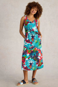 Introducing the Heidi Jersey Dress, the perfect combination of style and comfort. Made with 100% cotton jersey, it's perfect for any occasion. The sleeveless style and easy drawstring waist provide a flattering fit, and the pockets add convenient functionality. Get ready to turn heads and stay comfortable all day long.