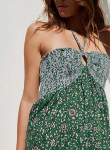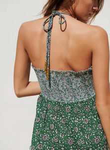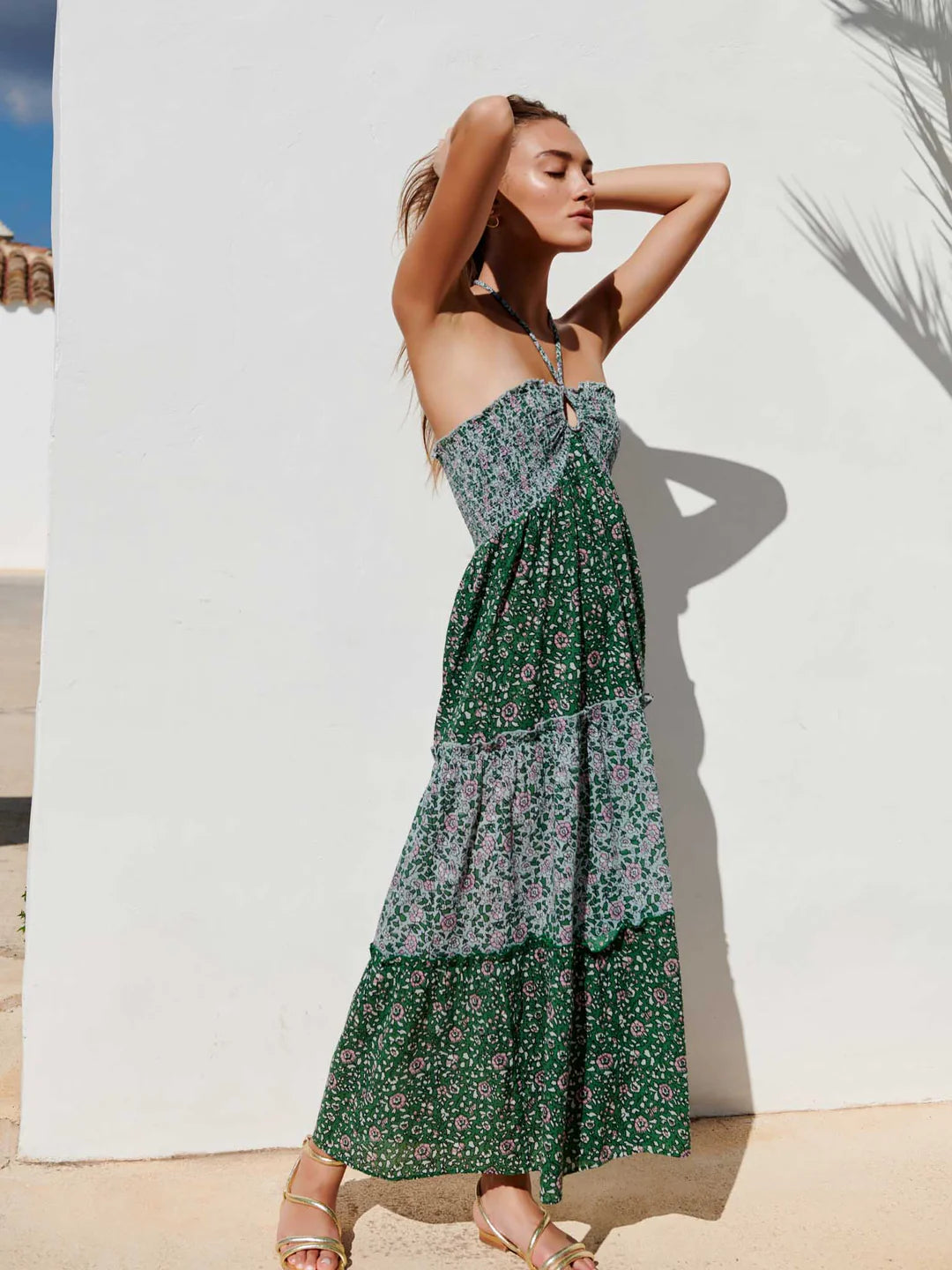 Turn heads in the quirky yet elegant Robe Ronda Dress! This midi dress features a unique smoke design at chest level, while the backless and floral pattern add a playful touch. With a tie at the neck to complete the look, you'll feel confident and stylish in this dress.