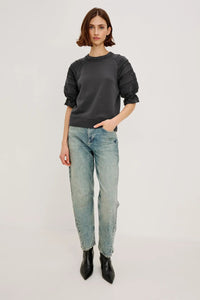 The Aggy sweatshirt offers effortless comfort with its relaxed fit crafted from 100% cotton French terry. Delicate cotton lace insets and charming ruffled sleeves add a graceful, feminine detail that elevates your casual wardrobe. Perfect for cozy days when you want to feel both stylish and at ease.