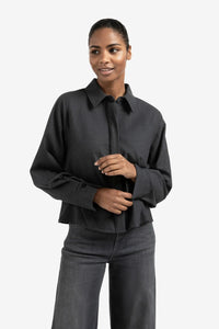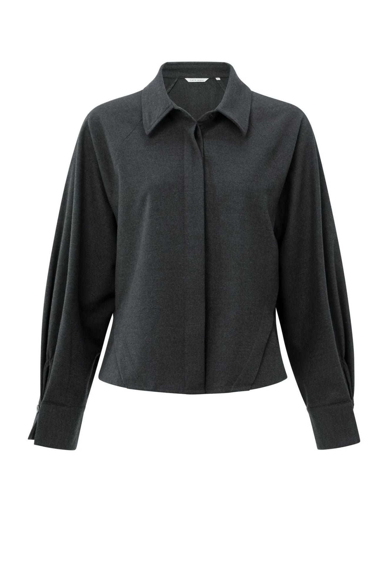 This Batwing Blouse combines elegance and comfort with its soft fabric and loose fit. The batwing sleeves and refined angled seams create a flattering silhouette, while the long sleeves with cuffs add sophistication. A concealed button closure and a gently curved hemline bring a modern, feminine finish, making it perfect for both casual and dressier occasions. Elevate your wardrobe effortlessly with this stylish and comfortable blouse.