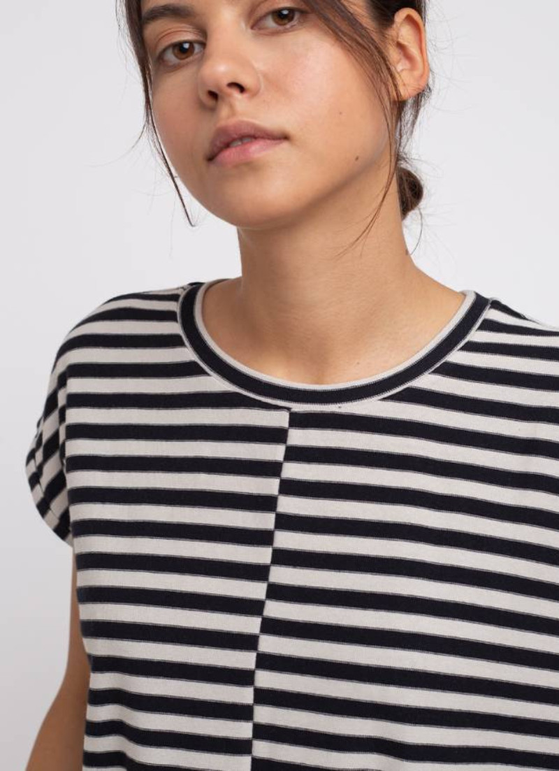 Préparez-vous à montrer votre côté ludique avec le haut à rayures tricoté Jarin ! Confectionné en coton biologique, ce t-shirt pour femme présente une coupe classique et une encolure ronde. Le design rayé ajoute une touche de fun et de brillance à votre garde-robe de tous les jours. Allez-y, faites une déclaration et amusez-vous avec la mode !