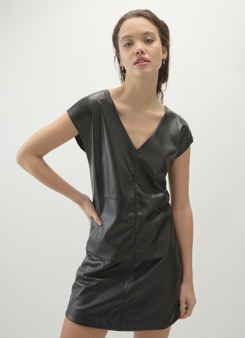 Ce Lane Top est le rêve de toute fashionista ! Fabriqué en similicuir luxueux et coupé pour flatter votre silhouette avec son col en V, ses manches courtes et sa coupe décontractée, vous ferez tourner les têtes avec celui-ci. Classe, chic et tellement stylé !