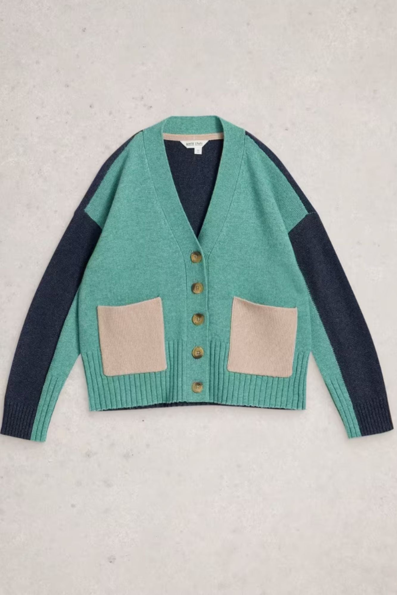 The Mary Colour Block Cardi brings cool-toned style that pairs effortlessly with your favourite denim. Featuring a flattering V-neck, long sleeves, and a regular fit, this cardigan is as comfortable as it is versatile. The real stars? Generously sized patch pockets perfect for stashing snacks, your phone, or whatever else you need to smuggle into your day. Layer it over basics for instant polish.