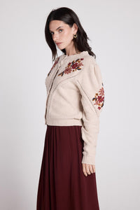Wrap yourself in cozy charm with this cable-knit cardigan, where delicate floral embroidery blooms across the fabric in a burst of colour. Thoughtfully designed with classic buttons and a flattering feminine silhouette, it's the perfect layer for adding personality to any outfit. Soft, comfortable, and undeniably sweet—this is the cardi that makes you smile every time you put it on.