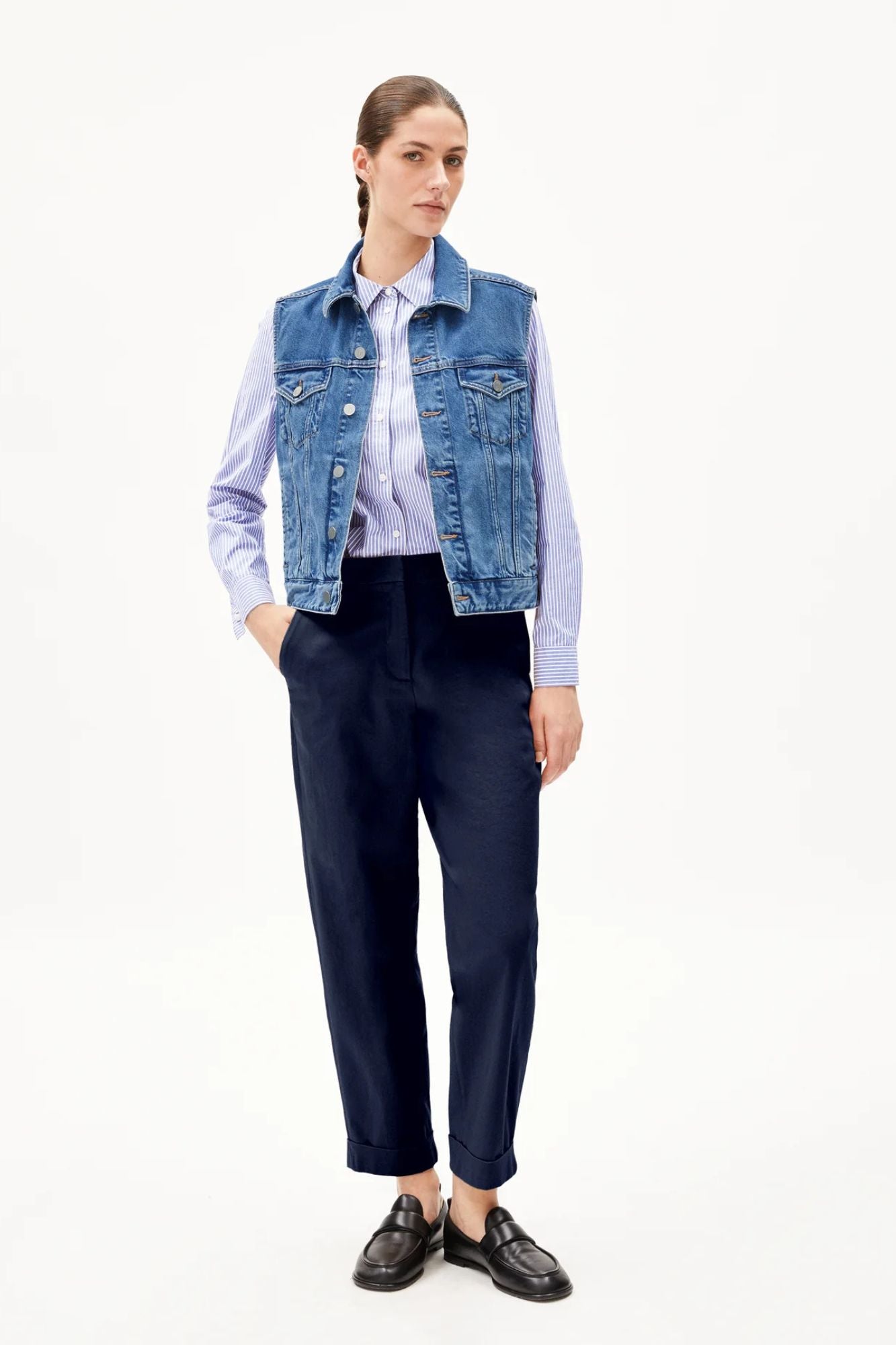 The Kaadwi Pants combine comfort and style with their distinctive twill texture and ankle-length design. Featuring convenient side slit pockets and a sleek hook-and-bar closure, they offer both practicality and a refined look. The added stretch ensures you enjoy unrestricted movement, making these chinos perfect for all-day wear. Elevate your wardrobe with a pair that blends effortless elegance and functionality.
