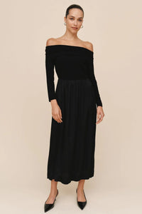 Effortless elegance meets playful charm in this off-shoulder maxi dress. Crafted from sumptuous soft fabric that drapes like a dream, it glides from seaside dinners to evening soirées without missing a beat. The chic off-shoulder neckline showcases your collarbone with understated sophistication, while bracelet-length sleeves strike the perfect balance between coverage and refinement. The flowing maxi length adds a touch of graceful drama, elongating your silhouette beautifully. Whether you're seeking that breezy coastal vibe or polished evening glamour, this dress delivers both with effortless style.