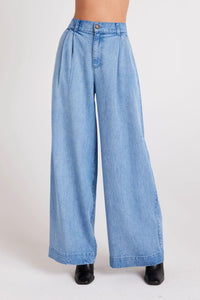 Introducing the Greta Pleated Wide Leg Trousers - your new go-to for style and comfort. The pleated design adds a touch of elegance while the denim wash gives them a vintage vibe. Perfect for any occasion! (Trust us, they'll become your faves!)