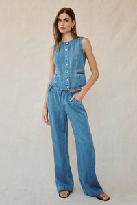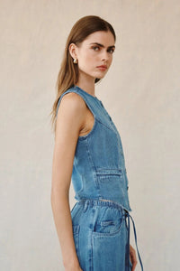 The High Neck Fitted Vest combines a classic vibe with a playful twist, crafted from soft, denim-inspired fabric that adds just the right touch of texture. Its high neckline and full button front make it effortlessly chic, while the slim, slightly cropped cut flatters your shape. Whether layered for day or dressed up for night, this vest is your new favorite piece to mix, match, and flaunt with a tailored edge.